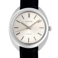 - ロンジンの手巻き“コンクエスト”。「Cライン」と呼ばれるケースデザインが特徴的なモデルです。ムーブメントには手巻きCal.706を搭載。リューズと尾錠にロンジンのロゴマークが刻印されています。