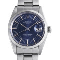 - 金属塊から削りだした防水性の高いオイスターケースと、全回転式ローターを搭載したパーペチュアル機構を搭載した“オイスターパーペチュアル・デイト”です。デイトジャストよりもリーズナブルで、ダイヤルコレクションが豊富に揃い、ケース違いでバリエーションが豊かなため、年代を問わず幅広い層に受け入れられています。