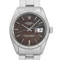 - ロレックス オイスターパーペチュアルデイト Ref.1501です。飛行機のエンジンに似せて作られたといわれるエンジンターンドベゼルが非常に印象的で、6mmの大きめなリューズにクラウンシンボル、ブレスレットの両サイドにはリベット(鋲)など時代を感じさせるデザインとなっております。またこちらは、希少なカラーチェンジが見られるミラーダイアルです。現行モデルとは異なるアンティークならではのデザインや造り、経年変化による独特の雰囲気を堪能することができるコレクターにはたまらない特別な一本です。シリアルから1965年頃製造と推察されます。