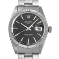 - オイスターパーペチュアルデイト Ref.1501です。飛行機のエンジンに似せて作られたといわれるエンジンターンドベゼルが非常に印象的で、6mmの大きめなリューズにクラウンシンボル、ブレスレットの両サイドにはリベット(鋲)など時代を感じさせるデザインとなっております。1967年頃製造の個体です。