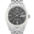 - アンティークの雰囲気漂うデイトジャスト Ref.1601”です。ダイアルは外側が一段下がった立体感のある仕様が特徴的。風防には今となっては懐かしいプラスチック風防を備えており、オールドウォッチらしさを前面に醸し出しています。