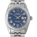 - Ref.1603 アンティークデイトジャストが入荷致しました。ダイアルの外周が外側に傾斜した立体感のあるタイプの文字盤です。風防には今となっては懐かしいプラスチック風防を備えており、アンティークウォッチらしい雰囲気を漂わせています。5連ブレスレット、独特のカット装飾が入ったベゼルが、現行デイトジャストにはないエレガントな趣きを添えています。ダイアルがブルー、インデックスがローマ数字のダイアルは流通量が少なく、珍しいロレックスをお探しの方にお勧めです。
