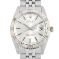 - 両方向回転ベゼル付きデイトジャストの愛称“サンダーバード”。その歴史は1956年にアメリカ空軍のアクロバットチーム「サンダーバーズ」隊長のドン・フェリス大佐の引退を記念して特別発注された“デイトジャスト”に端を発します。ホワイトゴールド×ステンレススティールに、統一感のあるシルバーダイアルとバーインデックスが、洗練された大人の印象です。