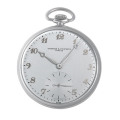 - ムーブメントに手巻きCal.439/8を搭載したアルミ製ポケットウォッチです。6時位置にはスモールインデックスを備え、ブレゲ数字インデックスとブレゲ針は年代を感じさせる雰囲気を纏っています。全体がシンプルなシルバートーンで飽きの来ないデザインが魅力です。