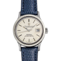 アンティークならではの風合いを残すため外装は洗浄に留めております。そのためケースサイドや裏蓋に小傷が残ります。風防全体に薄傷がございますが、視認性にはほとんど影響ございません。針と文字盤は概ね良好なコンディションです。夜光は光りません。ベルトは新品のリザードストラップ(青)に交換しております。