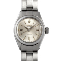 - 手巻きムーブメントを搭載したRef.6410 レディースモデルです。インデックスはアップライトのバーインデックス。時分針はシャープなリーフハンド。リューズはロレックスのクラウン付リューズ。ブレスレットは3連リベットブレス。バックルは飛び出し王冠タイプのアンティークブレスレットになります。