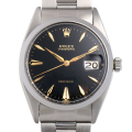 - なかなか市場に出回らない、手巻きオイスターデイトが入荷しました。その製造は1950年頃、ブラックダイアルにクサビインデックスが特徴的なモデルです。早い段階から確立されたロレックスの時計製造技術が垣間見れる一本ではないでしょうか。