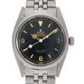 - エクスプローラー第二世代となる6610が入荷しました。1955年~1958年頃の極めて短い期間にのみ製造された為、年々希少性が高まっております。シリアル16番、裏蓋1956年2期と整合性が取れており、ブレスレットはUSジュビリーが装着されております。ゴールドの長短針にビッグドットのホワイト秒針、1950年代特有の枯れた質感のミラーダイヤルが魅力です。夜光は一部修正箇所があり、リューズは後年交換されておりますが雰囲気は損なわれておりません。ロレックス初の両方向巻き上げ式自動巻きムーブメントCal.1030を搭載しております。
