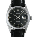 - 手巻きムーブメント搭載の“オイスターデイト”です。3時位置にはデイトジャスト機構ではないカレンダーを備えています。インデックスはアップライトのバーインデックス。時分針はスマートなペンシルハンド。リューズはロレックスのクラウン付リューズ。ムーブメントにはCal.1225を搭載しています。