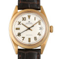 - 手巻きムーブメント搭載の“オイスターデイト・プレシジョン”です。ダイアルはアイボリーとシルバーのツートーン。インデックスの上半分にローマ数字、下半分にアラビア数字を配した通称「ユニークダイアル」です。時分針はスマートなペンシルハンド。リューズはロレックスのクラウン付リューズ。シリアルナンバー(21*****)から1967年頃の製造と推察されます。