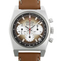 - 1969年のステンレススティール製エル・プリメロの3モデルのうち1モデルを忠実に再現しており、リファレンス 「A385」の復刻版となるモデルです。時計業界初と言われるグラデーション文字盤を開発しました。ブラウンのグラデーション文字盤とブラウンのカーフスキンストラップと合わせることで、時間の経過とともに独特の風合いを醸し出したような究極のヴィンテージルックを作り上げました。