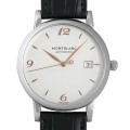 - シルバーダイアルとゴールド仕上げの針&インデックスの組み合わせが華やかな“スター”のカレンダー付きモデルが入荷しました。ムーブメントはパワーリザーブ約42時間の自動巻きMB24.09を搭載。3気圧防水。