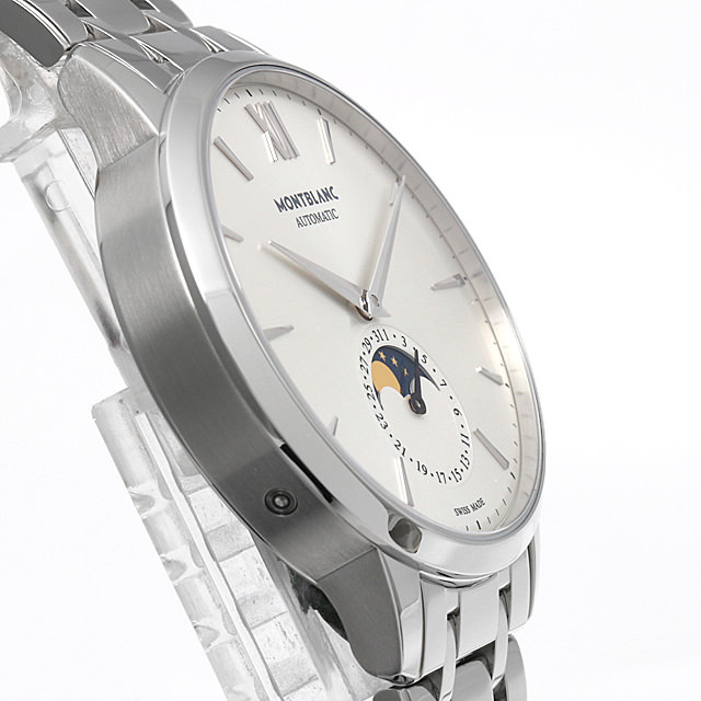 - “ヘリテイジ・スピリット”コレクションからムーンフェイズのモデルが入荷しました。シルバーダイアル6時にムーンフェイズとポインターデイトを備えています。ムーブメントはパワーリザーブ約42時間の自動巻きMB29.14を搭載しています。3気圧防水。