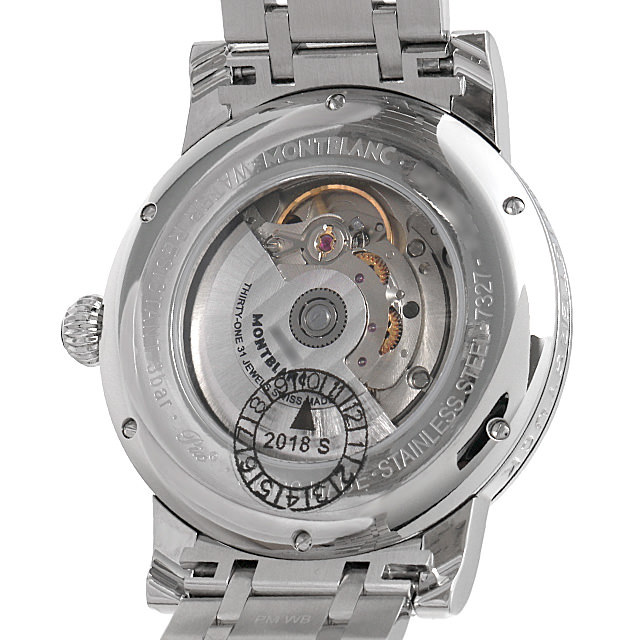 - センターにギョーシェが施されたシルバーダイアル、ローマンインデックスとブルースティールが落ち着いた趣の“スター”が入荷致しました。スモールセコンド針のロゴマークがオシャレなモデルです。パワーリザーブ約38時間の自動巻きMB24.16を搭載。3気圧防水。