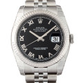 - 1945年にリリースされ、今やロレックスの顔とも言える「デイトジャスト」は、金属塊から削りだした防水性の高いオイスターケース、午前0時頃瞬時に日付けが変わるデイトジャスト機構、全回転式ローターを搭載したパーペチュアル機構と、ロレックス三大機構を搭載したモデルです。すっきりとしたフォルムのラウンドケースとホワイトゴールドを採用したフルーテッドベゼルが現代的でスタイリッシュな印象を与えています。