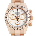 - 腕時計を代表する傑作とも言える“コスモグラフ・デイトナ”。細部に至るまで丁寧に仕上げられたケースには、従来のピンクゴールドに微量のプラチナが入ったエバーローズゴールドを使用しており、輝きの衰えない上品で鮮やかな色味が魅力です。プッシュボタンで操作可能な秒・分・時のクロノグラフや、タキメーターとして機能する目盛り付きベゼルを備えており機能性も抜群です。