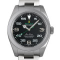 - 2014年に製造終了となったエアキングが、2016年に“Ref.116900 エアキング”としてリニューアルして帰ってきました。ケース径は40mmへと大幅サイズアップ。ムーブメントはCOSC認定のCal.3131を搭載。秒針はコーポレートカラーであるグリーンにカラーリングされ、ブラックダイアルとの組み合わせがクールです。12・3・6・9時以外の二桁のアラビアインデックスがスタイリッシュです。