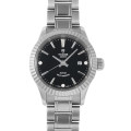 - ブラックの文字盤に3ポイントのダイヤモンドとバーインデックスを組み合わせた、シンプルながら高級感のあるモデルです。シンプルなデザインのため使用範囲が広く、様々なシーンで活躍してくれます。お求めやすい価格もまた魅力です。