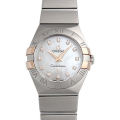 - オメガのプレステージモデル“コンステレーション”。様々なバリエーションが存在しますが、こちらはマザーオブパールの文字盤に12ポイントのダイヤが配された華やかなモデルです。ケース、ブレスレットは艶なし仕上げです。オメガ クォーツ キャリバー1376搭載。100m防水。