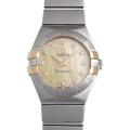 - オメガを代表する最もオーソドックスでドレッシーなデザインの“コンステレーション”。全モデルがクロノメーター認定を受けた高精度コレクションです。こちらはケースサイドの「爪」にイエローゴールドを採用したモデルで、明るいシャンパン・マザーオブパールダイアルの上にインデックスとして12個のダイヤモンドをセッティングしたモデルです。10気圧防水。