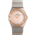 - コンステレーションの2015年新作が入荷です。 波模様が施されたピンクシェル文字盤に12ポイントのダイヤインデックスを備えた可愛らしい仕様です。ベゼルとブレスレットのリンクに18Kレッドゴールドが使用されています。搭載ムーブメントはキャリバー1376です。10気圧防水。