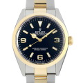 - 全ての探検家に向けて、1953年に開発されたエクスプローラーI。こちらは2021年発表のRef.124273です。エクスプローラー初のステンレスとイエローゴールドのコンビモデルとなっており、今までにはないにエレガントな印象に仕上がっております。日付表示すら持たないシンプルなデザインはそのままに、ケースは36mmへとダウンサイジング。これは、先々代のRef.114270に範を取ったと言われており、文字盤レイアウトもこの往年の名機に準ずることとなりました。ムーブメントは最新世代と称されたCal.3230を搭載。優美さを備えながらも極めて優れた耐磁性と耐衝撃性、安定的な高精度を実現しており、約70時間のロングパワーリザーブを誇ります。防水性は100m。ロレックス技術の集大成的存在と言えます。