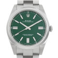 - 2020年発表、特大サイズ41mmの”オイスターパーペチュアル”です。デイトジャストよりもリーズナブルで、ダイアルコレクションが豊富に揃いバリエーション豊かなため、年代を問わず幅広い層に受け入れられています。完全自社製Cal.3230を搭載。パワーリザーブ約70時間。100m防水。