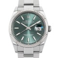 - 長い歴史の中で、多彩なバリエーション展開が行われてきたデイトジャスト。こちらは、美しくも爽やかなミントグリーン文字盤が魅力の一本です。エレガントさを湛えつつ、どこかスタイリッシュな印象もあるのは、オイスターブレスのなせる業でしょうか。新たに14件もの特許を取得し、新開発の脱進機クロナジー・エスケープメントを採用した自社開発キャリバー3235を搭載しており、パワーリザーブ約70時間と実用性も十二分です。100m防水。