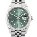 - 長い歴史の中で、多彩なバリエーション展開が行われてきたデイトジャスト。こちらは、美しくも爽やかなミントグリーン文字盤が魅力の一本です。エレガントさを湛えつつ、どこかスタイリッシュな印象もあるのは、オイスターブレスのなせる業でしょうか。新たに14件もの特許を取得し、新開発の脱進機クロナジー・エスケープメントを採用した自社開発キャリバー3235を搭載しており、パワーリザーブ約70時間と実用性も十二分です。100m防水。