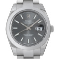- 2017年に発表された“デイトジャスト41”です。14件もの特許を取得し、新開発の脱進機クロナジー・エスケープメントを採用した自社開発キャリバー3235を搭載します。パワーリザーブはおよそ70時間。通常のデイトジャストとは異なりケース径が41mmとサイズアップしております。様々なダイアルバリエーションが存在しますが、こちらは落ち着きのあるスレートダイアルにホワイトバーを組み合わせたモデルです。100m防水。