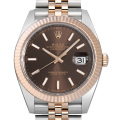 - 2016年に発表された「デイトジャスト41」。新たに14件もの特許を取得し、新開発の脱進機クロナジー・エスケープメントを採用した自社開発キャリバー3235を搭載します。パワーリザーブはおよそ70時間。通常のデイトジャストとは異なりケース径が41mmとサイズアップしております。こちらは、チョコレートブラウンダイヤルにバーインデックス、ジュビリーブレスレットの組み合わせのモデルです。100m防水。