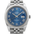 - 2017年に発表された“デイトジャスト41”です。14件もの特許を取得し、新開発の脱進機クロナジー・エスケープメントを採用した自社開発キャリバー3235を搭載します。パワーリザーブはおよそ70時間。通常のデイトジャストとは異なりケース径が41mmとサイズアップしております。様々なダイアルバリエーションが存在しますが、こちらはブルーダイアルにローマインデックス、ジュビリーブレスを組み合わせた個体です。100m防水。