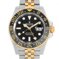 - 2023年発表のGMTマスターです。ベゼルカラーはブラック×グレーの2トーン。グレーの部分はデイタイムを示しており、ブラックの部分はナイトタイムを示しております。ステンレスとイエローゴールドのコンビに、ラグジュアリーな印象のジュビリーブレスを採用。完全自社製ムーブメントキャリバー「3285」搭載。パワーリザーブ70時間。100m防水。