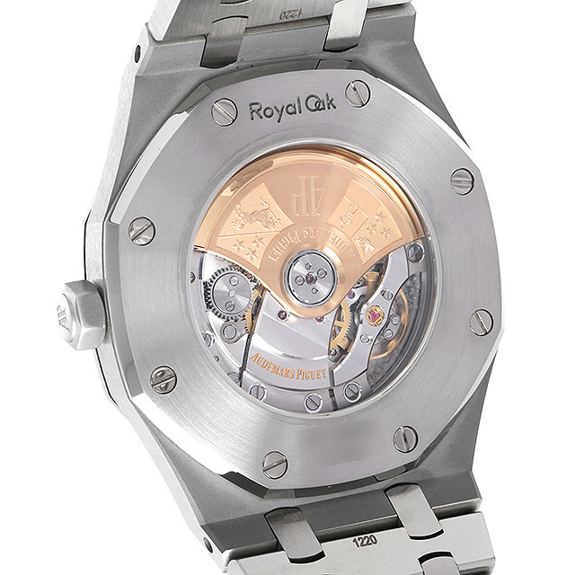 - オーデマピゲを代表し、ラグジュアリースポーツウォッチの代名詞とも言える“ロイヤルオーク”。多くの人気モデルを産み出してきたジェラルド・ジェンタ氏によってデザインされ、1972年のファーストモデルから高い人気を誇るスポーツウォッチです。2012年の新作であるこちらのモデルは、ケース径41mmと従来のケース径(39mm)よりも2mm大きくなっています。スケルトンバックからは、搭載している自社開発ムーブメントCal.3120の、正確で安定した歩度調整が可能なジャイロマックス・テンプがご覧いただけます。