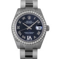 - 2009年に発表されたデイトジャストRef.178384。6時のインデックスにダイヤを配した今までに無いデザインが特徴です。濃い紫色の文字盤とベゼルに取り巻くダイヤモンドが、さらに華やかさを引き立ててくれます。