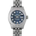 - 男女問わず永遠のステータスシンボルとも言えるロレックスの“デイトジャスト”。落ち着いた深いブルーの文字盤に10ポイントのダイヤモンドがセッティング。上品な雰囲気が漂うドレスウォッチです。