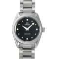 - 複数のダイアルバリエーションと、選べるサイズが魅力的な“シーマスター・アクアテラ”。スタイリッシュなデザインと革新的なテクノロジーが融合したコレクションです。こちらはシマーブラックダイヤルに針やインデックス、ダイヤのホルダーにロジウムプレートを使用したエレガントなデザインです。