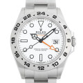 - エクスプローラーII誕生50周年にあたる2021年、新型としてリリースされた226570が入荷しました。こちらは、初代から系譜を引く白文字盤のモデルです。先代216570からデザインは踏襲されていますが、ラグがシャープ化したことで、スタイリッシュで高級感ある顔立ちとなりました。さらに搭載するムーブメントは、ロレックスが新世代と自負するCal.3285。この傑出した新キャリバーは、高効率と安定的な高精度を実現しながらも、約70時間のロングパワーリザーブを誇ります。防水性は100m。洞窟探検家への敬意はそのままに、ロレックス技術の最先端が集約された新作と言えるでしょう。