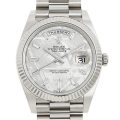 - ロレックスの最上級ラインとして1956年に誕生したハイクラス・コレクション“デイデイト”。高級素材のみを使用しているモデルであり「富と成功の証」とも言われています。こちらはケース・ブレスレットにホワイトゴールドを使用した華やかなモデルです。ダイアルにメテオライト(隕石)を加工した特別仕様で、10Pのバケットダイヤインデックスと相まって格調高いドレッシーな仕上がりです。