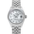 - 1945年に誕生し、今やロレックスの顔とも言えるデイトジャストは、金属塊から削り出した防水性の高いオイスターケース、午前0時頃瞬時に日付けが変わるデイトジャスト機構、全回転式ローターを搭載したパーペチュアル機構と、ロレックス三大機構を搭載したモデルです。ベゼルには細かい山が装飾されたフルーテッドベゼルを採用しており、可愛いデザインでありながら高級感あふれる華やかな逸品です。