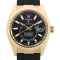 - 2020年に発表された際、話題を集めた「スカイドゥエラー オイスターフレックス搭載モデル」を入荷いたしました。ムーブメントには380のパーツと7つの特許技術からなる“Cal.9001”を搭載。文字盤中央で目を引くGMTディスク。GMTマスターとは異なりディスクが回転することで赤い逆三角形のマーカーから第二時間帯(ホームタイム)を読み取ります。また「サロス」と名付けられた年次カレンダー。文字盤外周の小窓で月を表し、3時の小窓で日付を表示。小の月の終わりに31日を飛ばす機構を持っています。リューズの二段引きを排し、リングコマンドベゼルを搭載。パーツへの負荷を減らし、ローカルタイム/ホームタイム/月・日付の変更を容易にしました。実用性と機能美を兼ね備え、ロレックスの革新性を感じさせるコンプリケーションモデルとなっております。