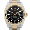 - バーゼルワールド2012で最も話題を集めた「スカイドゥエラー」の2017年モデルが入荷致しました。GMTマスターとは異なりディスクが回転することで赤い逆三角形のマーカーから第二時間帯を読み取ります。また「サロス」と名付けられた年次カレンダー。文字盤外周の小窓で月を表し、3時の小窓で日付を表示。実用性と機能美を兼ね備え、ロレックスの革新性を感じさせるコンプリケーションモデルとなっております。