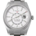 - バーゼルワールド2012で最も話題を集めた、ロレックスの新モデル「スカイドゥエラー」。こちらは2017年発表モデルです。ムーブメントには380のパーツと7つの特許技術からなる新型“Cal.9001”を搭載。文字盤中央で目を引くGMTディスク。GMTマスターとは異なりディスクが回転することで赤い逆三角形のマーカーから第二時間帯(ホームタイム)を読み取ります。また「サロス」と名付けられた年次カレンダー。文字盤外周の小窓で月を表し、3時の小窓で日付を表示。小の月の終わりに31日を飛ばす機構を持っています。リュウズの二段引きを排し、リングコマンドベゼルを搭載。パーツへの負荷を減らし、ローカルタイム/ホームタイム/月・日付の変更を容易にしました。実用性と機能美を兼ね備え、ロレックスの革新性を感じさせるコンプリケーションモデルとなっております。