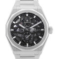 - 1960年代の初期の「デファイ」モデルの八角形の形状から着想を得た角張ったステンレススチール製ケースは、先駆モデルと同じ堅牢性と耐久性に優れたDNAを受け継ぎながらも、よりエッジの効いた構築的なデザインとなっています。調和の取れた左右対称のオープン文字盤は、1960年代のゼニスの「ダブルZ」ロゴを彷彿とさせる、4つの点を結んだ星の形をしています。高振動エル・プリメロ3620SK。自動巻きムーブメント約60時間のパワーリザーブ。