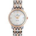 - エレガントかつ時流に流されないクラシカルな雰囲気を纏った“デ・ビル プレステージ”コレクション。光沢のあるマザーオブパールをダイアルに採用した高級感のあるモデルです。レッドゴールドとステンレススティールを巧みに組み合わせた7連ブレスもまた、レディースモデルらしい華やかなデザインに仕上がっています。