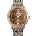 - エレガントかつ時流に流されないクラシカルな雰囲気を纏った“デ・ヴィル プレステージ”コレクション。ブラウンダイヤルが落ち着いた印象を見せつつ、ベゼル・コンビブレスレットにレッドゴールドが使用されており、華やかさも併せ持ったデザインに落とし込まれています。