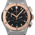 - ウブロが掲げるフュージョンコンセプトとクラシックシリーズが融合して生まれた“クラシック・フュージョン”コレクション。こちらのモデルは素材にチタンとキングゴールドを使用しており、見た目以上に重さを感じさせません。また、アクセントとして各所に使用されたキングゴールドが、シンプルながらも豪華さを感じさせてくれるクロノグラフとなっております。
