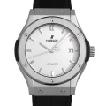 - ウブロが掲げるフュージョン・コンセプトとクラシックシリーズが融合して生まれた“クラシックフュージョン”。様々なバリエーションがありますが、こちらはオパーリンシルバーの文字盤を採用。シンプルなデザインのためビジネスはもちろん、カジュアル、フォーマルまで洋服を選ばず装着できます。