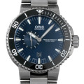 - オリスが提案するスタイリッシュなダイバーズウォッチ「アクイス」。こちらは海を連想させる深いブルーのダイアルと、ブラックのセラミックベゼルをが特徴的なモデルです。500m防水を備えた大型ケースは、246グラムのずっしりとした着け心地があり男らしさ満点。ケースサイズが大きく、分厚いモデルのため、腕が太い、がっしりとした体格の方によく似合います。