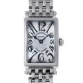 - フランクミュラーの豊富なコレクションの中でも、高い人気を誇るレクタンギュラーケースのロングアイランド。ダイヤル全面に広がるビザン数字やスペード型の時針など、1900年代初頭に一世を風靡したアール・デコを髣髴とさせるクラシカルなデザインです。オールステンレス・クォーツムーブメント搭載のため、実用性にも優れた一本です。